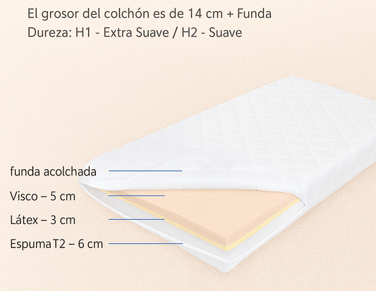 Colchón - 14 cm - Espuma, látex y visco - H1/H2