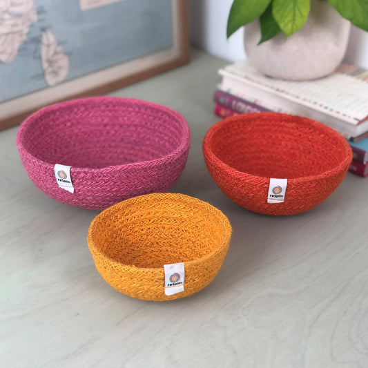 Conjunto 3 cestos de yute colores fuego
