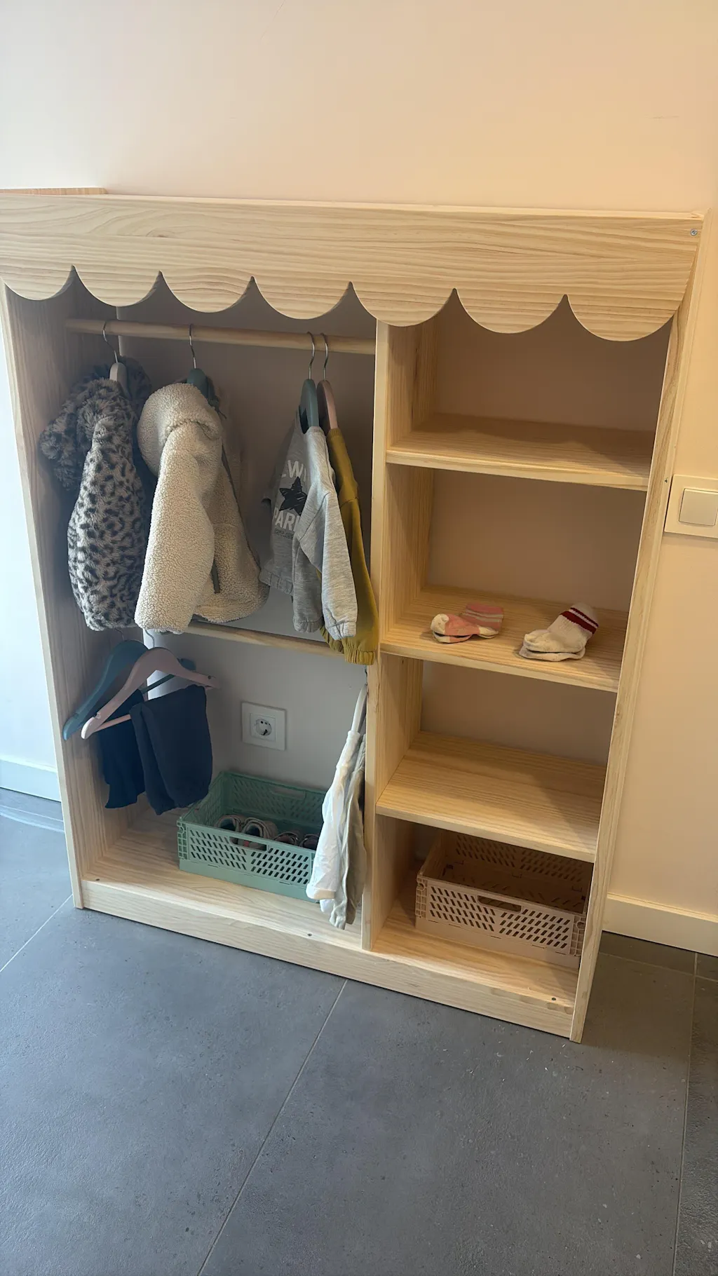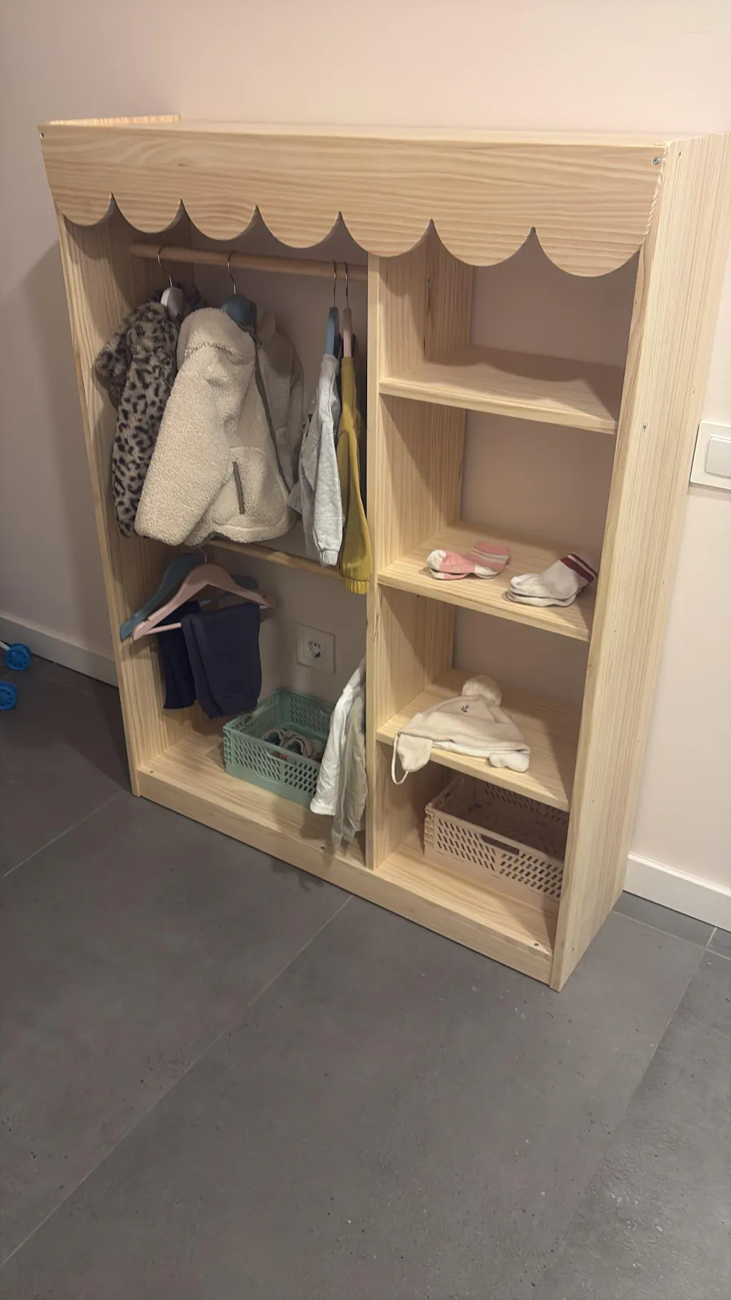 🧒 Armario Montessori. Fomenta la independencia de tu pequeño al permitirle organizar su ropa de manera accesible. Con este armario Montessori, los niños pueden gestionar sus enseres personales con autonomía, facilitando su proceso de vestirse y desvestirse sin ayuda.