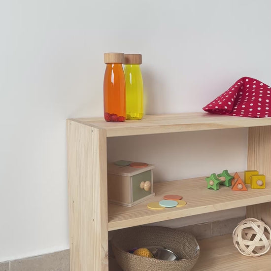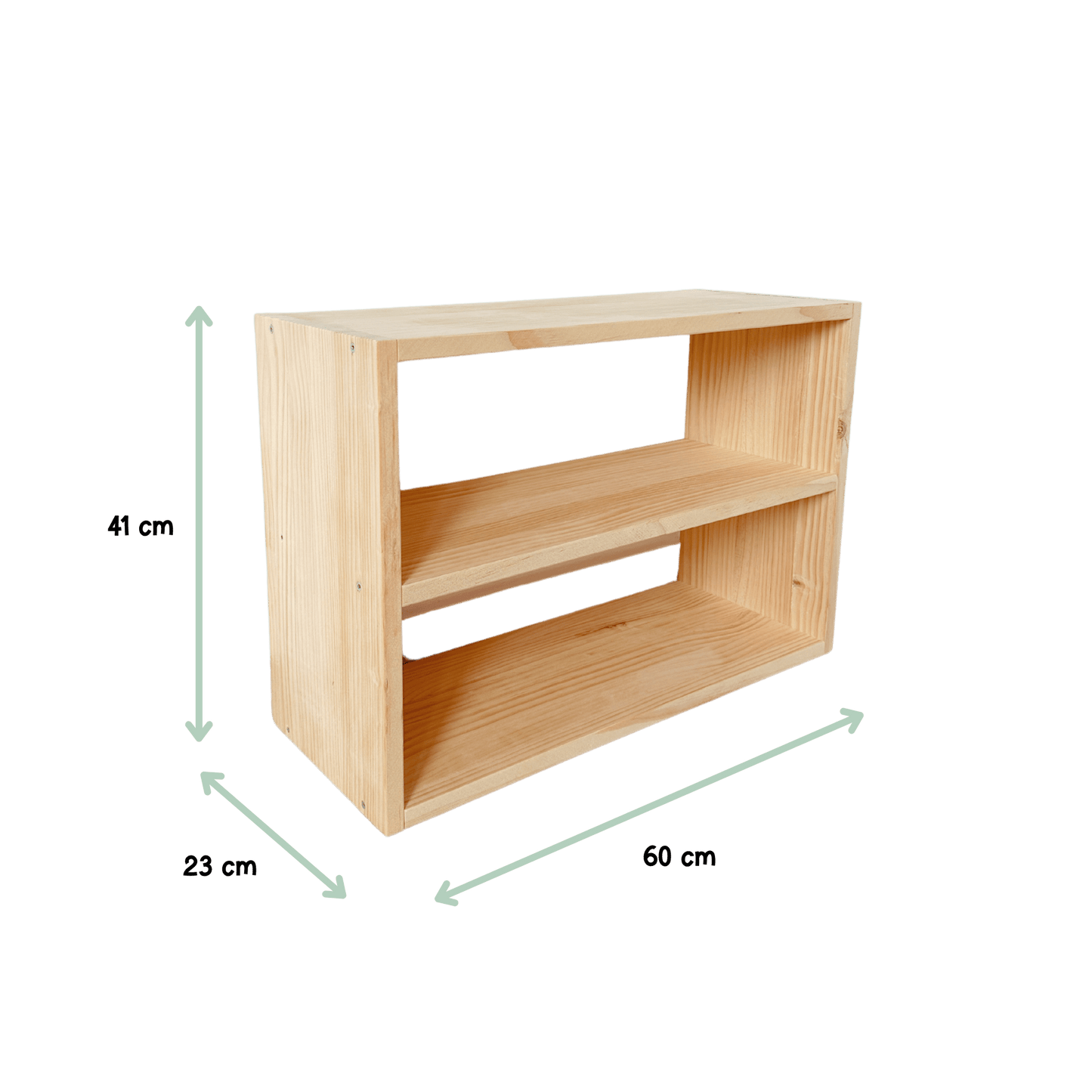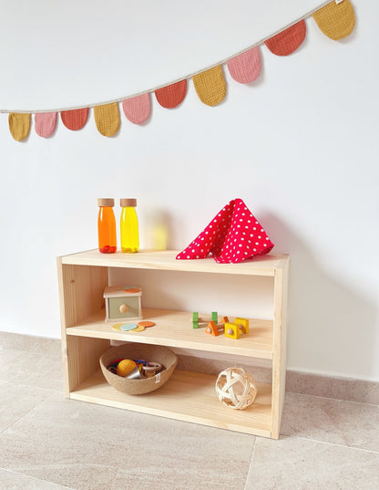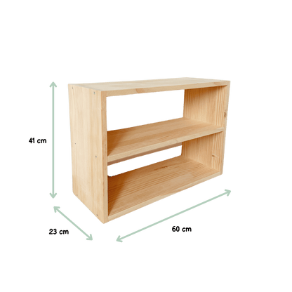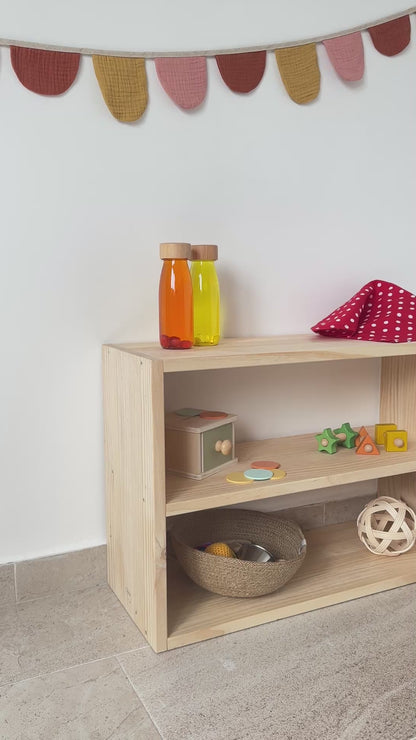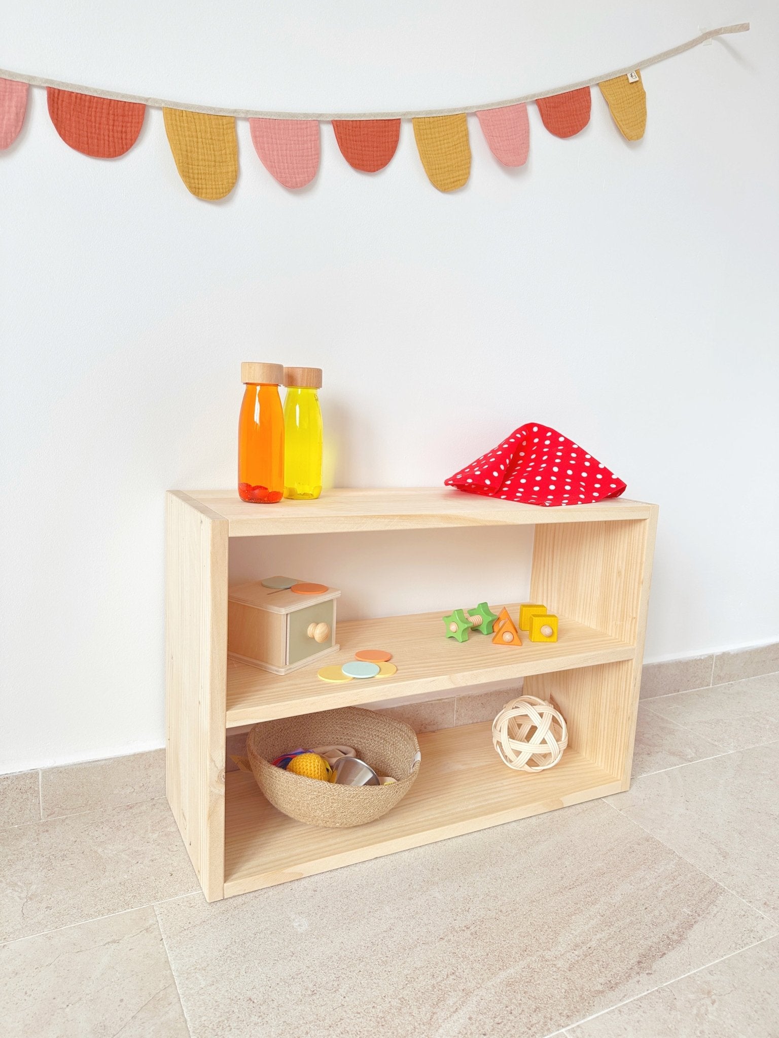Tamaño compacto ideal para habitaciones pequeñas, zonas de juego o como complemento a otras estanterías Montessori.