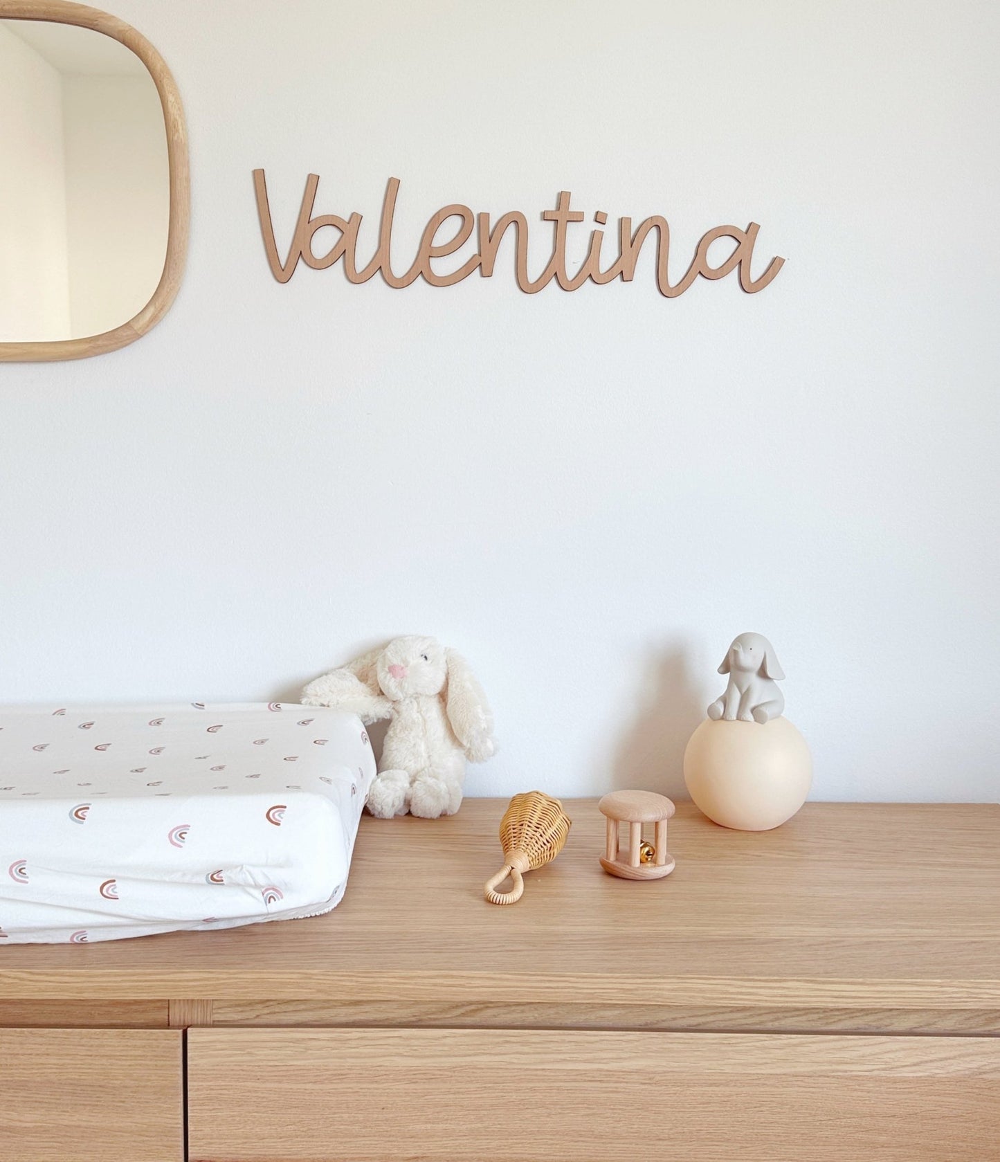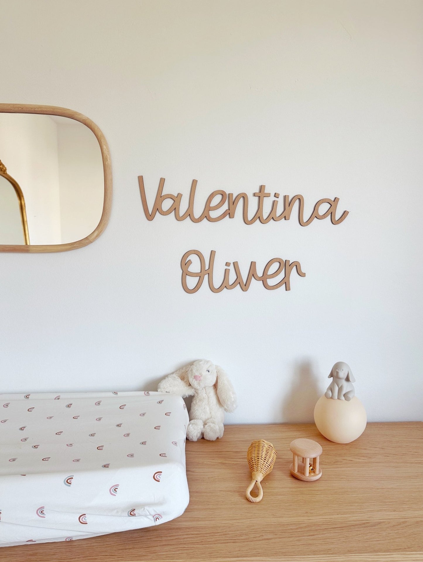 ¡Ateeención, cuidado! Puede que este detalle te guste más a ti que a tu peque. No te culpamos, ¡Nosotras también somos amantes de la madera! Imagínate lo bonito que quedará tu nombre, el del peque o vuestra palabra favorita con este material. 🥰